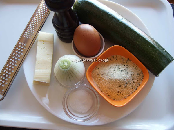 En un bol batir el huevo, añadir la cebolleta y el calabacín rallado y escurrido,